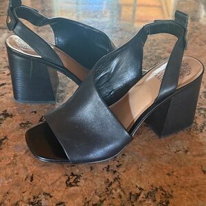 Vince Camuto VP Salaweigh Black Leather Slingback block Heels size 10