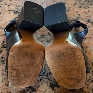 Step out in style with these elegant black leather slingback heels. Perfect for any occasion, these shoes offer both comfort and sophistication. Block heel. Sling back. Genuine leather.