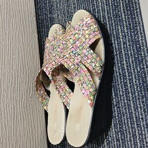 Bernie Mev Multi Color Wedge Sandals Size 9