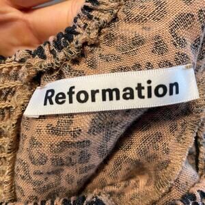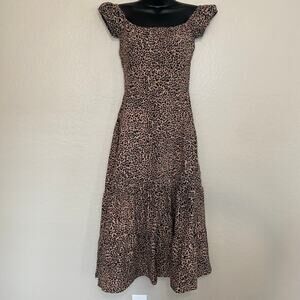 Reformation Toulouse Leopard Midi Dress Womens Sz 2 100% Linen Tiered Smocked