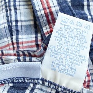 Vintage Y2K Disney Baby shortalls Winnie the Pooh shortalls, size 18 months. Baby Pooh and Tigger embroidery on a red, white, and navy plaid. Cute puffy Airplane applique and the words “let’s play!” At the chest. Lightweight 100% cotton, 2 front pockets. Straps are adjustable with two button settings.