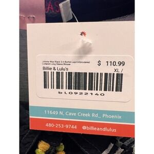 Johnny Was Black 3/4 Button uup Embroidered Collared Long Sleeve Blouse