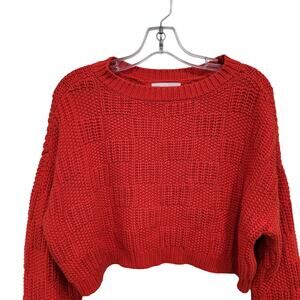 Willow & Wind Cropped Sweater Crew Neck Long Sleeve Cable Knit Red Size Large