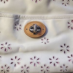 Coach Poppy Daisy Eyelet Leather Chain Tote Bag Ivory & Pink | Style #22438 GUC