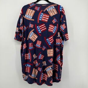 LuLaRoe Tunic Top Oversized M Navy Blue Patriotic Uncle Sam Hat Stars 4th July