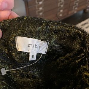 Beautiful green and black shimmer jacquard strapless dress. From Anthropologie, by Ruth. Size 8. There are some small snags on the fabric and a small (less than one inch) hole in a seam, so an easy fix. You can see this on the last photo. Other than that, perfect!