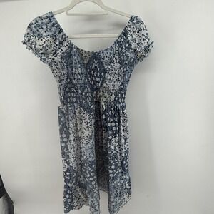 VTG Women's Size Medium Dress Blue Y2K 90s Fairy Boho Floral Milkmaid Coquette