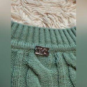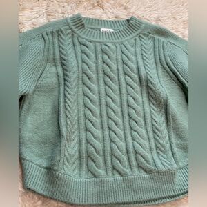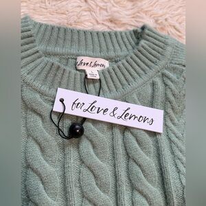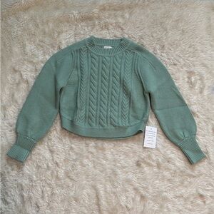 NWT For Love & Lemons Sydney Cropped Cable Knit Sweater in Sage - Size Large