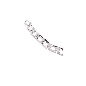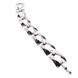 This bracelet's sleek geometric links and polished silver-tone finish add a refined touch to any wrist. A timeless piece to elevate personal style.