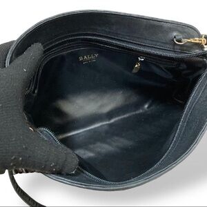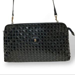 Bally Black Woven Leather Crossbody Shoulder Bag Gold Logo Italy STRONG BUY