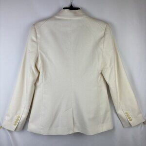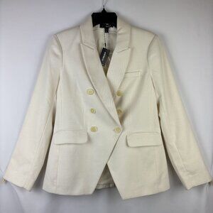 Small Double Breasted Blazer White Cream Long Sleeve Button Close Lapel Pockets