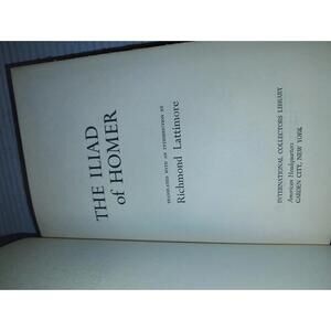 The Iliad by Homer, translated by Richmond Lattimore. International Collectors Library hardcover edition featuring Lattimore’s highly respected, faithful English translation of the classic Greek epic.