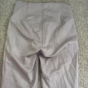 Stylish gray leggings featuring a convenient zipper pocket. Perfect for casual wear or workouts.