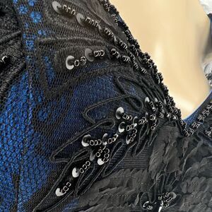 Sue Wong 3/4 SLEEVE V-NECK BEADED ROYAL BLUE & BLACK LACE COCKTAIL DRESS SIZE 4