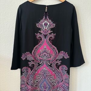 Tibi Black 100% silk Sz L mini Dress with Pink Paisley Accents