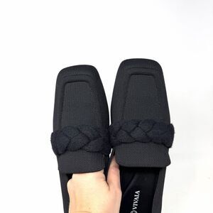 Keywords: VIVAIA loafers, black knit flats, square toe shoes, braided detail, comfort shoes, slip on flats, everyday wear, work flats, casual loafers, breathable shoes, lightweight flats, European size 42