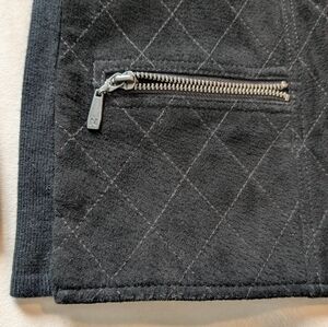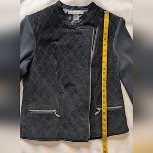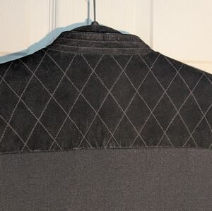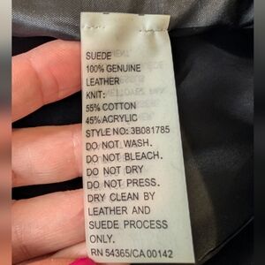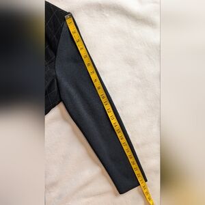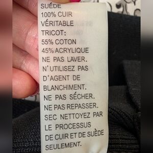 Peter Nygard Leather, Suede & Knit Zip-Up Jacket – Women’s Size / Measurements: Shoulder to ham: 23 inches Sleeve length: 23 inches Pit to pit: 19 inches Condition: Very good condition with minor pulls in the knit. Well-maintained and structurally sound. The suede on the upper back shows light signs of wear, which are visible in the photos. Description: This Peter Nygard jacket combines genuine leather, suede, and knit for a stylish and versatile look. The front trunk is leather and suede with two functional front pockets, while the back features black knit covering most of the area and sleeves, with leather and suede accents across the upper blades. The jacket features shoulder pads that give it a structured and elevated silhouette, adding a polished, stylish touch. The off-center zip closure adds a modern, asymmetrical detail. Made with high-quality materials: 100% genuine leather and suede, with knit panels composed of 55% cotton and 45% acrylic. Care instructions recommend professional leather and suede dry cleaning only. Leather & suede: 100% genuine Knit: 55% cotton, 45% acrylic Care: Dry clean only – leather & suede process Style / Features: Mixed-material design Off-center zip closure Two front pockets Knit back and sleeves with leather/suede accents Zip-up style Model image is digitally created for styling inspiration. The actual item is photographed separately and accurately represented in the listing.