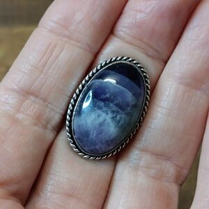 Elegant oval ring with a purple amethyst stone. Features a twisted silver-tone band. new no tags.