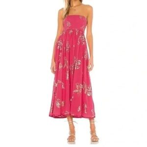 Free People Baja Babe Midi Dress Hot Pink Combo Metallic Gold XL Floral Cotton