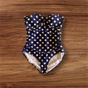 Boden One Piece Swimsuit Bathing Suit Polka Dot Blue White Size 12 Missing Strap