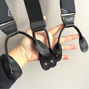 Vintage Black Paisley Print Silk Button Braces Suspenders - One Size