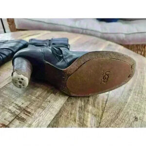 UGG Caroline High Heel Black Leather Side Zip Winter Boots Womens Size 6