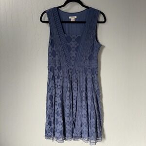 Sundance True Essence Blue Lace Floral Lined Sleeveless Embroidered Dress Sz 6