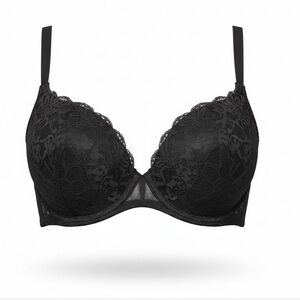 Chic black lace design. Offers support and elegance. Ideal for any occasion.