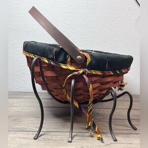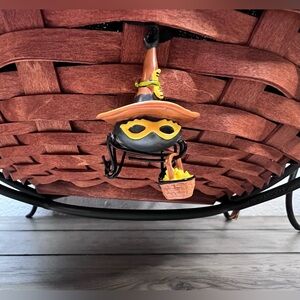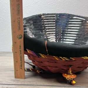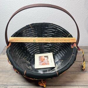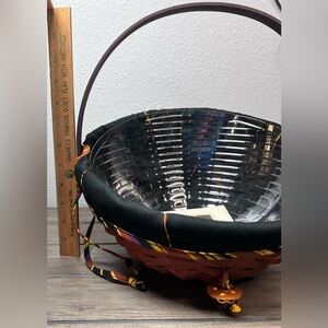 This NEW 2006 Longaberger Large Autumn Treat basket is a must-have for any collector. This Unique Fall Basket Combo includes a Large Autumn Treats Liner, Plastic Protector, Adorable Spider “Web Weaver” Tie-On and the Spooky Wrought Iron Spider Legs. The basket is hand woven from wood and made in the USA. It also comes with a swinging handle making it easy to display and carry. The Basket measures Approximately 12 inches in diameter and 4 inches tall in the front, while the back measures 7 1/2 inches tall. I just put the liner and tie-on together for this listing- I will send the packaging shown in picture with this Basket Combo set.