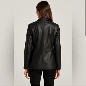 Tags: black faux leather blazer, rebecca minkoff blazer, vegan leather jacket, womens black blazer, fall outfit ideas, modern minimalist style, chic workwear, edgy office outfit, sleek leather look, moto inspired blazer, trendy outerwear, business casual jacket, statement layering piece, classic black jacket