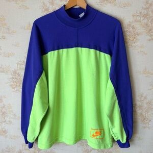 Vintage 80s 90s Nike retro neon green blue mock neck color block sweatshirt L