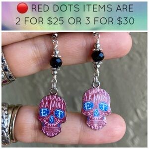 Bullet stone black obsidian set ( Necklace + matching earrings ) Double layer necklace . Black obsidian β¨ Stainless steel chains & clasp . First layer is 15 inch , second is 17 inch ( But it also has a two inch extention on the back to adjust it longuer ) But If you need a different size lmk before purchase ( handmade by me π I can adjust ) Earring post are also stainless steel (Allergy free / nickel free ) TAGS : Boho / bohemian / boho chic / xmas / christmas / Rock / rocker / rock chic / shinny / sparkly / fairy / mermaid / witch / goth / gothic / moon child / gemstones / gem / gems / natural healing stones and crystals / crytals collector / gypsie / hippie / viking / celtic / celt / chokers / gift / silver choker . Hand crafted / cute sets / handcrafted / designer / trendy / fashionable / luxury / elegant / dainty / gift / onyx / black agate