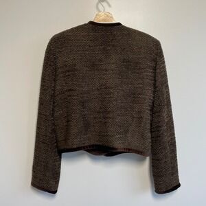 Patricia Wolf Brown Chenille Textured Velvet Trim Blazer Jacket Womens Size M