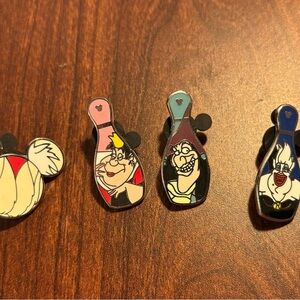Disney trading pins-Villains Hidden mickey. Queen of Hearts, Captain Hook, Ursula and Cruella Icon.
