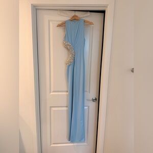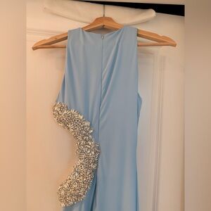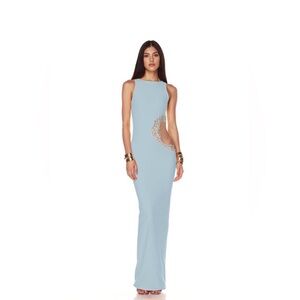 NWOT BRONX AND BANCO Camila Rhinestone Cutout Maxi Dress in powder blue