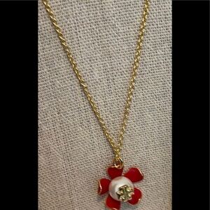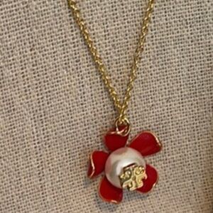 NWOT Tory Burch Gold And Samba Red Pearl Flower Necklace