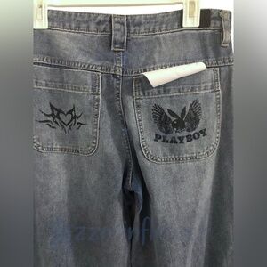 Playboy blue sinner lover butterfly rose playboy bunny embroidered jeans size 7