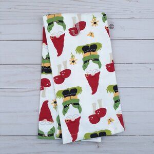 Kitchen Towel Red Gnomes Mushrooms Flowers Butterflies Dual Purpose