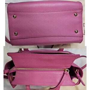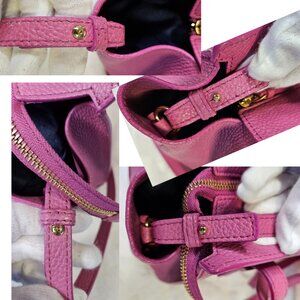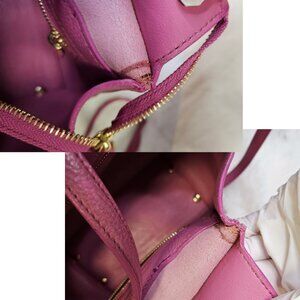 Versatile handbag that can also be used as a shoulder bag, featuring a pink leather exterior.