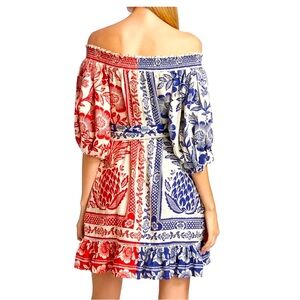 NWT FARM Rio Dress Mixed Pineapple Garden Off Shoulder Mini Dress Med intermix