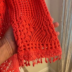 Stylish crochet knit sweater with long sleeves. Perfect for layering. So cute!