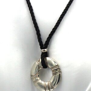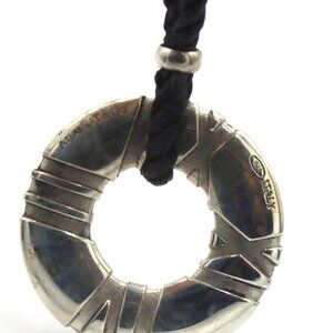 Tiffany & Co Atlas circle pendant on black cord necklace