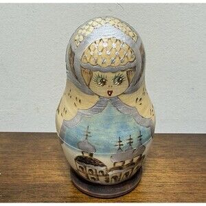Vintage Hand Painted Russian Matryoshka 5 Piece Set 4.75 Nesting Dolls Signed