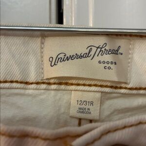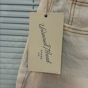 Classic straight leg jeans in a soft cream shade. Perfect for casual or dressy looks. Comfortable and stylish.