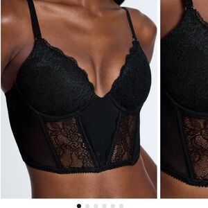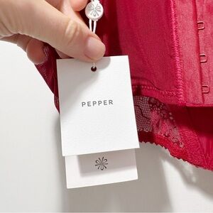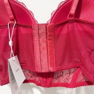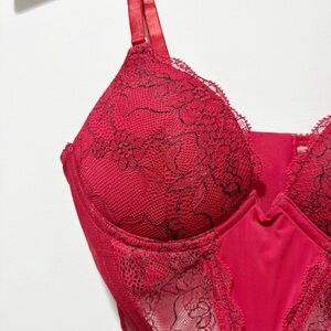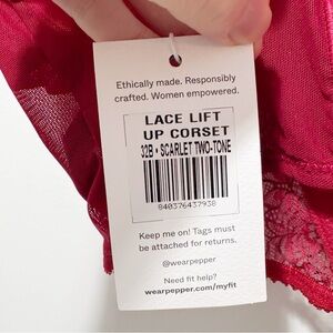 New Pepper Lace Lift Up Corset Scarlet Two Tone Size 32B Red Boning NWT Romantic