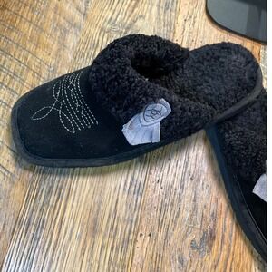 Ariat Womens Black Suede Faux Shearling Western Stitch Scuff Slippers Size 7