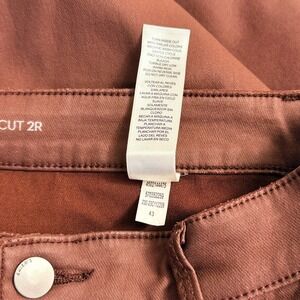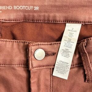 Keywords: chicos pants, faux leather, girlfriend jeans, bootcut trousers, stretch fabric, terracotta color, workwear, casual pants, everyday wear, comfortable fit, versatile style, autumn fashion, fall wardrobe