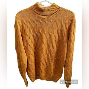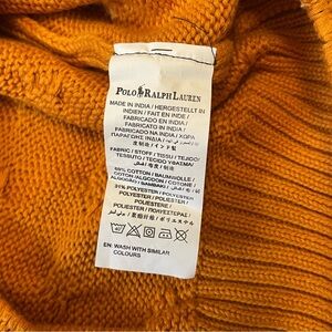 Womens Orange Polo Ralph Lauren Chunky Cable Knit Turtleneck Sweater - Medium