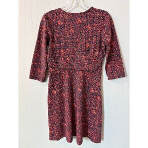 Beautiful Patagonia dress featuring a flattering empire waist and V-neckline. The coral and navy floral print creates an elegant look perfect for casual outings or office wear. Made from soft organic cotton blend with stretch for comfort. 3/4 length sleeves and knee-length cut make this versatile for any season. In excellent condition with vibrant colors and pattern intact.