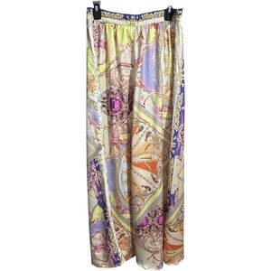 Steps New York Satin Wide Leg High Waist Pants Gold Multicolor Size L